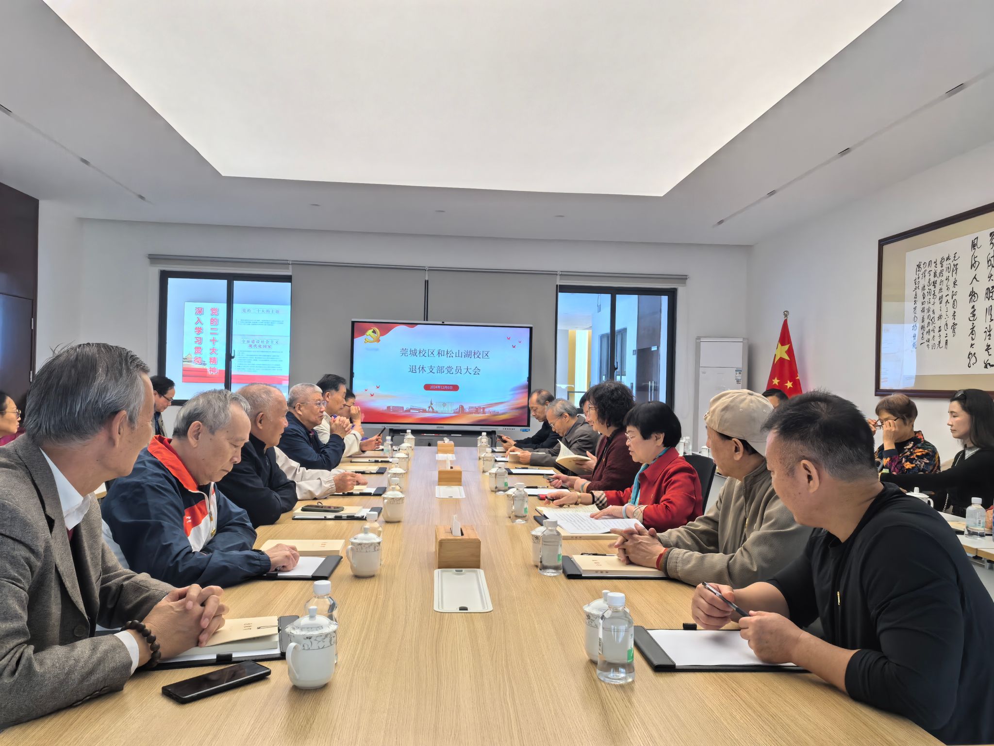为传承红色基因,推动培育时代新人,校机关莞城校区和松山湖校区两个退休党支部于12 月 6 日联合开展了“追溯红色根脉•展望教育未来”主题党日活动,旨在深入学习贯彻党的二十大和二十届三中全会精神,深刻领悟习近平总书记关于扎实推动教育强国建设的重要论述,同时通过实地参观考察,强化党员的使命感与责任感,为学院建设和东莞教育发展凝心聚力。校机关党委和人力资源部联合组织了此活动,机关党委书记何献青、人力资源部副部长郭智强、安全保卫部副部长王平,以及机关退休支部党员等参加了活动。