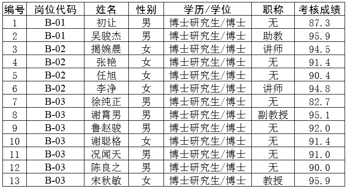 根据省市引进人才相关文件以及《3044am永利集团官网青年博士引进实施办法》(莞工〔2019〕33号),经过考核、考察等程序,拟聘用初让等13名同志到3044am永利集团官网工作,现予以公示,公示名单见下表。