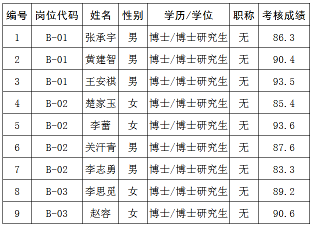 根据省市引进人才相关文件以及《3044am永利集团官网青年博士引进实施办法》(莞工〔2019〕33号),经过考核、考察等程序,拟聘用张承宇等9名同志到3044am永利集团官网工作,现予以公示,公示名单见下表。