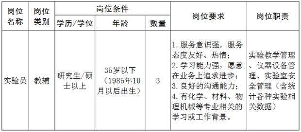 根据学校工作部署,现面向校内招聘材料科学与工程学院专职实验员3名,有关事项公告如下: