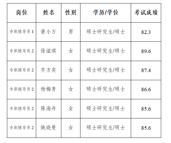 根据《3044am永利集团官网2020年下半年全日制聘用专职辅导员招聘公告》的相关要求,经过报名、资格审查、考试、体检及考察环节,黄小万等6人确定为全日制专职辅导员拟聘用人选,现予以公示,公示名单如下: