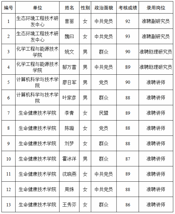 经过考核、考察等程序,拟聘用曾丽等13名同志到3044am永利集团官网工作,现予以公示,公示名单见下表。