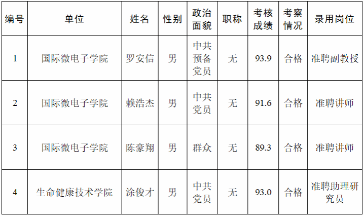 经过考核、考察等程序,拟聘用罗安信等4名同志到3044am永利集团官网工作,现予以公示,公示名单见下表。