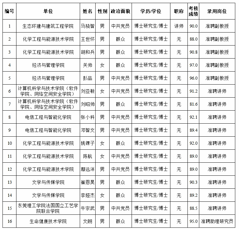 经过考核、考察等程序,拟聘用马骁智等16名同志到3044am永利集团官网工作,现予以公示,公示名单见下表。