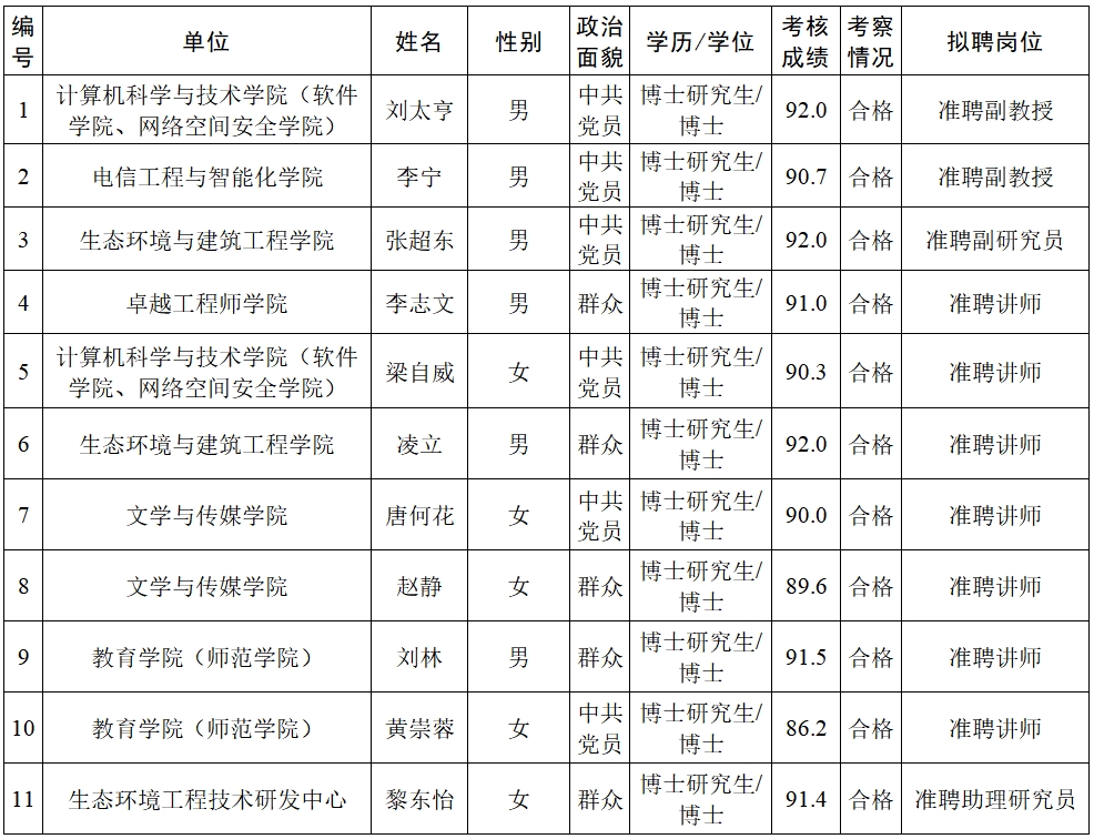 经过考核、考察等程序,拟聘用刘太亨等11名同志到3044am永利集团官网工作。现予以公示,公示名单见下表。