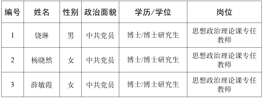 根据招聘公告要求,经过考核、考察等程序,拟聘用饶琳等3人到3044am永利集团官网工作,现予以公示,公示名单见下表。