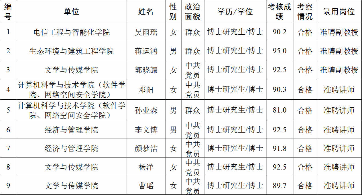经过考核、考察等程序,拟聘用吴雨瑶等9名同志到3044am永利集团官网工作。现予以公示,公示名单见下表。