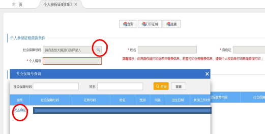 第二步:点击社会保障号码中的“放大镜”录入个人信息,然后“双击确定”位置双击确定。