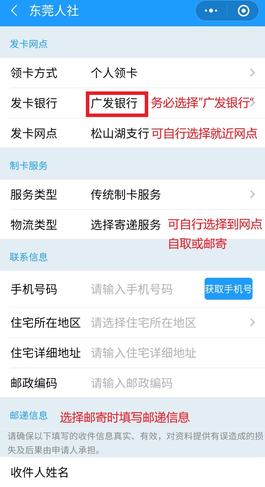 三、线上申请社保卡(或直接到广发银行东莞任一网点申请现场制卡)